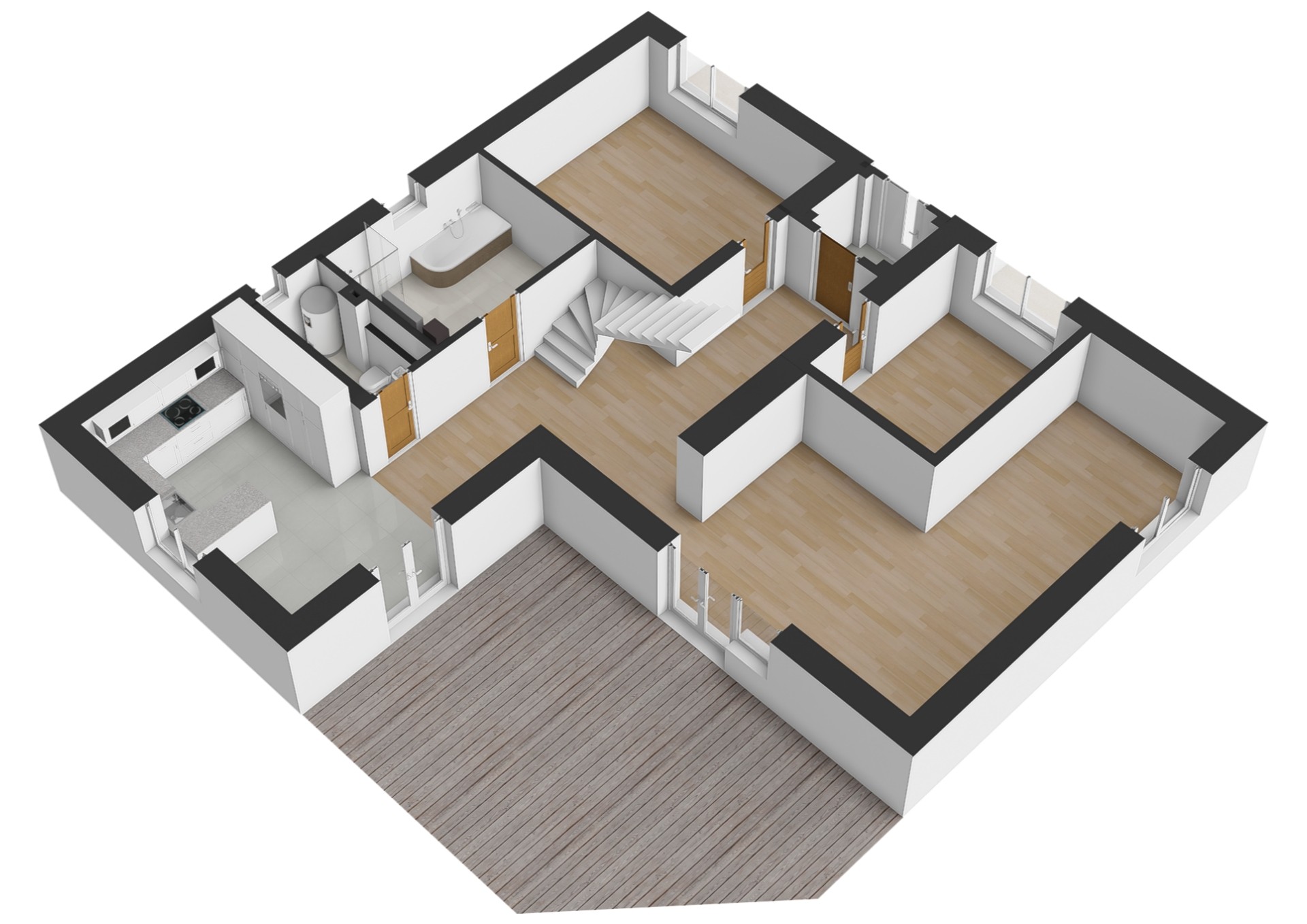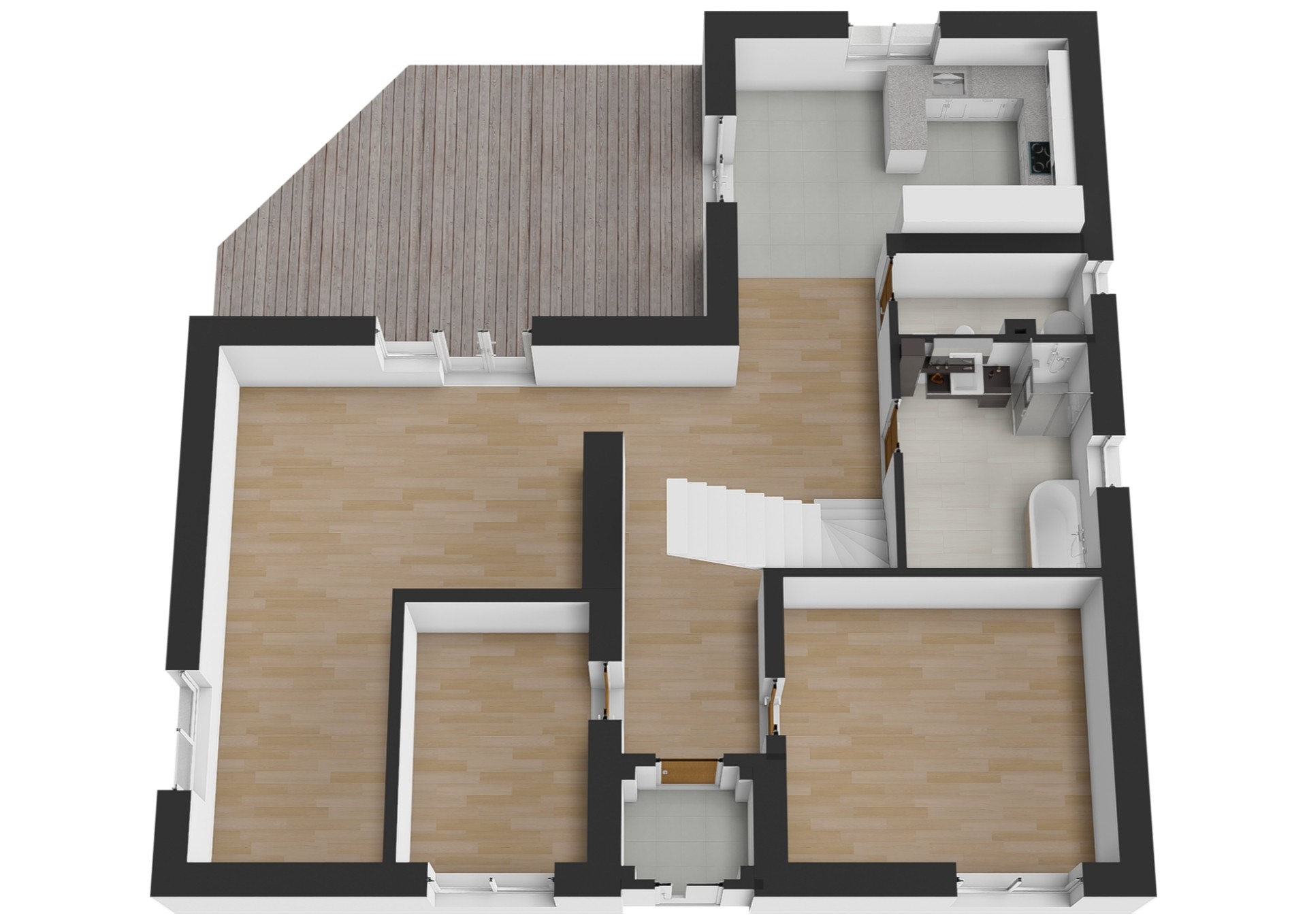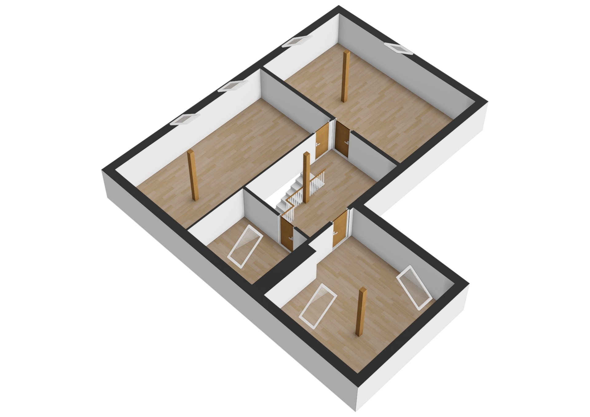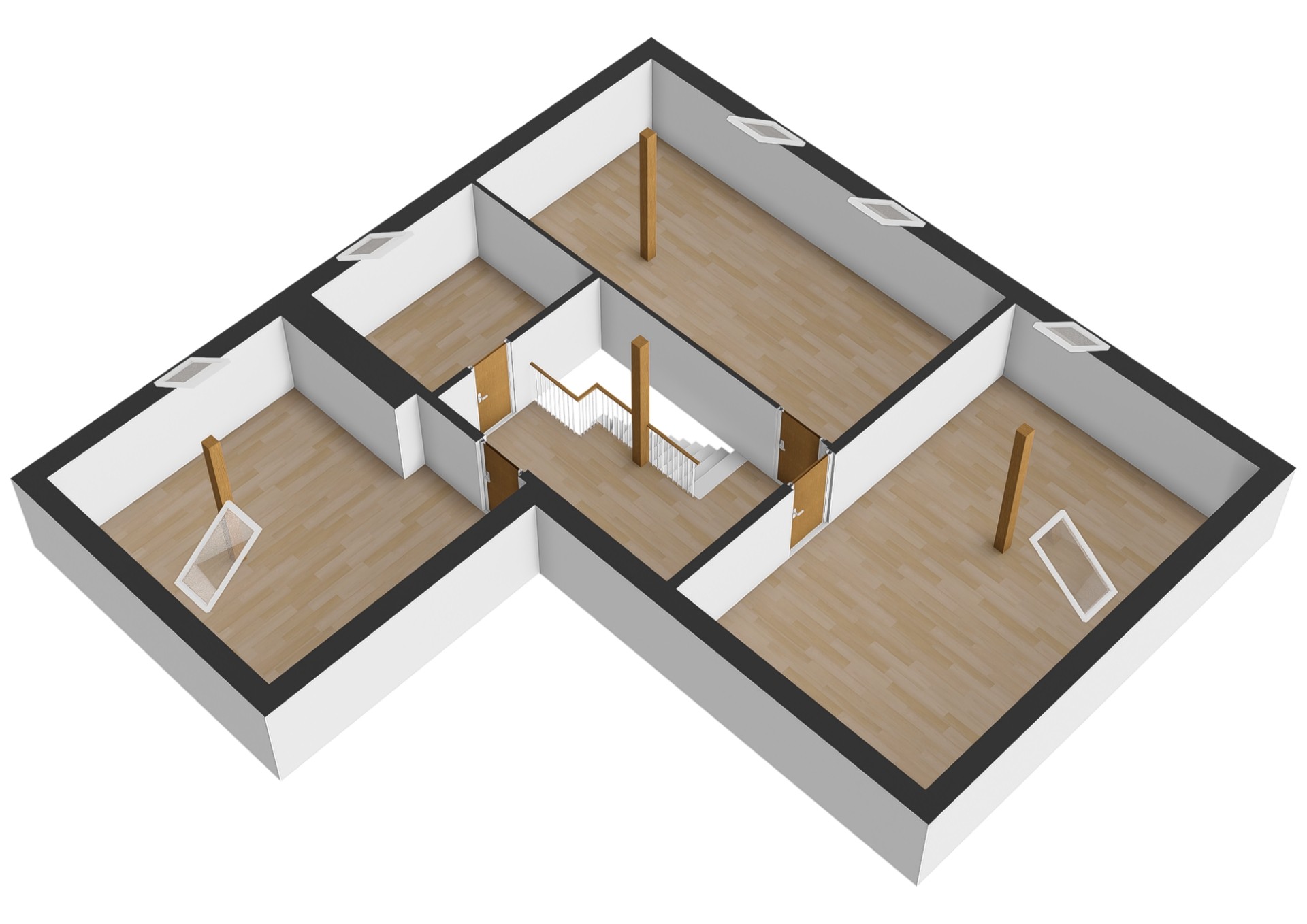 V obytném podkroví se nachází chodba se vstupy do dalších tří pokojů a koupelny s WC. Koupelna je zatím nedokončená, velkou výhodou je, že si ji každý může zařídit dle vlastních představ. Výměry jednotlivých místností a jejich dispozice jsou uvedeny ve fotogalerii.