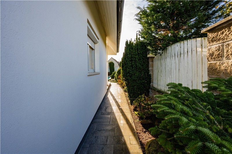V přízemí se nachází zádveří, hala, obývací pokoj, kuchyně, dva pokoje, koupelna a WC. Z haly je schodištěm přístupné podkroví.