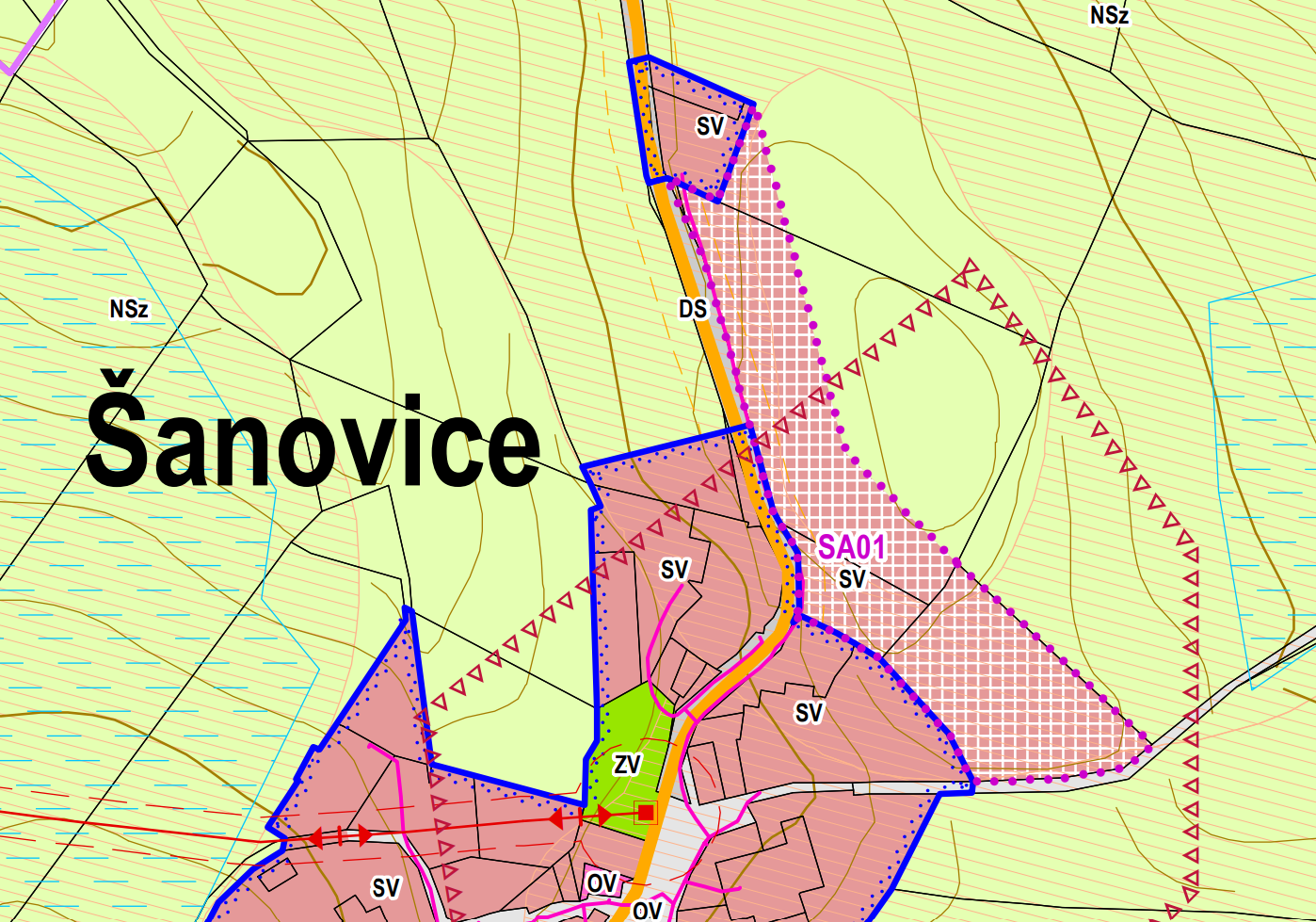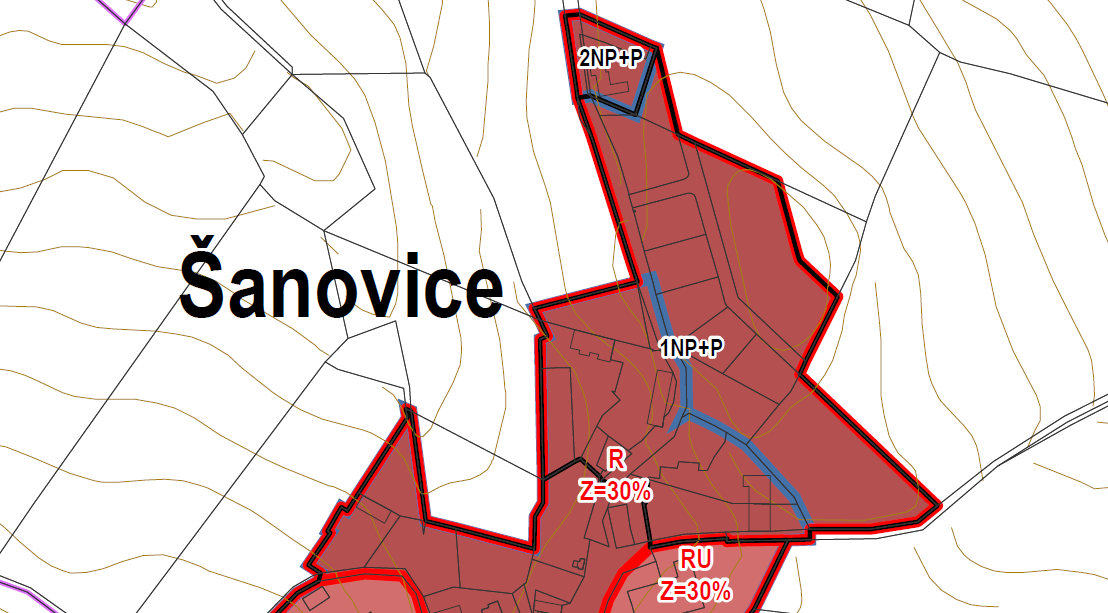 Pozemek parc.č. 42/12, umístěný v k.ú. Šanovice, místní část Šanovice, obec Sedlec-Prčice, je dle ÚP v kategorii SV – Bydlení smíšené obytné venkovské, viz ÚP (fotogalerie). Nepřípustné jsou stavby s plochou střechou. Nová stavba musí zapadat do okolní zástavby.